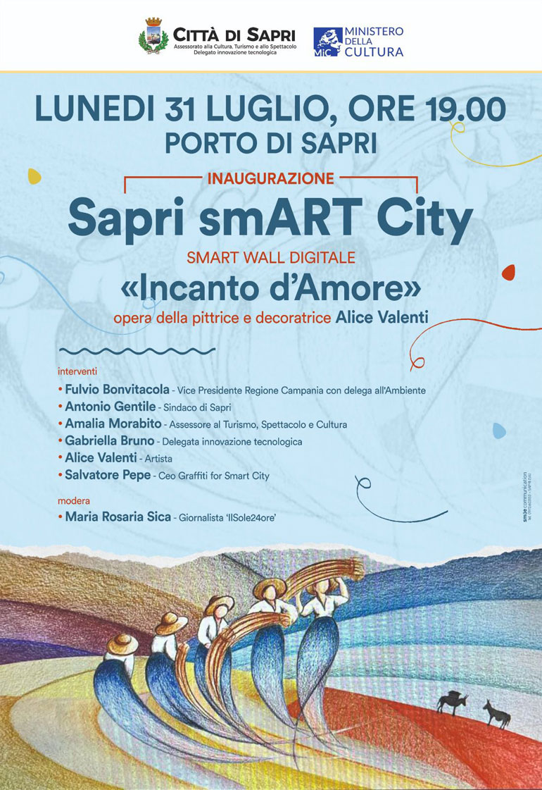 Sapri smART City, la tecnologia incontra arte e bellezza in un mosaico digitale: lo smart wall sarà inaugurato al porto. L'opera è stata realizzata dall'artista siciliana Alice Valenti. Un muro che diventa porta per un viaggio, tra arte e tecnologia, all’interno e alla scoperta di Sapri. Il porto, all’ingresso del suggestivo sentiero “Apprezzami l’asino”, sarà palcoscenico e simbolo dell’inaugurazione di Sapri smART City che segnerà l’inizio di un percorso digitale per città della Spigolatrice. L'evento avrà luogo lunedì 31 luglio alle ore 19:00, sul porto di Sapri, e vedrà la presentazione della smart wall digitale “Incanto d'Amore", un'opera d'arte unica realizzata dalla pittrice e decoratrice Alice Valenti. Un mosaico intelligente, connessione tra arte e tecnologia, in cui la periferia si fonde con il digitale, creando una visione di bellezza e ispirazione per tutti i cittadini. Un mosaico “intelligente”, quello che sarà inaugurato al Porto di Sapri, come è già avvenuto in alcune grandi città come Matera e Milano per riqualificare le periferie e offrire servizi ai cittadini, nato da un’idea di Salvatore Pepe, Ceo Graffiti for Smart City. Gli smartwall sono muri artistici ed ecosostenibili che grazie a una serie di sensori intelligenti sono in grado di interagire con i device, cellulari, tablet dei passanti, permettono di avere informazioni sui punti di interesse della città, pagare il parcheggio, differenziare i rifiuti, usufruire di connessione Wi-Fi e tecnologia 5G, ma anche condividere disegni e opere d’arte urbana. L’inaugurazione dell’opera sarà una prima tappa, un primo tassello, per presentare il progetto complessivo, alla presenza di ospiti e autorità locali. Saranno presenti Fulvio Bonavitacola, Vice Presidente Regione Campania con delega all’Ambiente, Antonio Gentile, Sindaco di Sapri, Amalia Morabito, Assessore al Turismo, Spettacolo e Cultura, Gabriella Bruno, Delegata innovazione tecnologica, l’Artista Alice Valenti, Salvatore Pepe, Ceo Graffiti for Smart City. Modera Maria Rosaria Sica, Giornalista ‘Il Sole24ore. «Siamo felici di inaugurare questo primo smartwall all’ingresso del Sentiero Apprezzami. - ha espresso soddisfazione il Sindaco del Comune di Sapri Antonio Gentile - Rappresenta non solo un punto informativo, ma anche un trait d’union, un collegamento, tra la sentieristica e la scoperta del territorio, con l’obiettivo di rendere smart e sostenibile informazione turistica e l’offerta cittadina».Scuole e associazioni saranno il prossimo step, assicura Gabriella Bruno, Consigliere con delega Decoro Urbano, Innovazione Tecnologica e Scuola del Comune di Sapri. «Il muro che da sempre simboleggia separazione ed esclusione diventa oggi con graffiti for smart city una finestra sul mondo capace di conciliare in se l'amore per l'arte, la sensibilità civica e la sostenibilità ambientale. - ha evidenziato il consigliere Bruno - E’ un progetto questo su cui lavoriamo da quasi un anno, che nasce dalla necessità di fondere la bellezza dell'arte alla potenza del digitale creando così una rete di servizi per i cittadini. Il nostro obiettivo è quello di valorizzare dei punti importanti della nostra città, rendendoli al tempo stesso punti informativi e di utilità giornaliera che successivamente cercheremo di mettere anche a disposizione del mondo della scuola e delle associazioni». Sottolinea l’importanza del turismo smart anche l’Assessore al Turismo, Spettacolo e Cultura Amalia Morabito. «Sta prendendo sempre più piede negli ultimi anni ed è destinato ad avere sempre la maggiore "esponenzialità", visti anche i numerosi finanziamenti che si attiveranno in questo senso. I visitatori potranno anche avere a disposizione le informazioni sulla nostra città. L’opera che sarà inaugurata lunedì è un’opera d’arte e andrà anche a riqualificare la zona del porto che costeggia il sentiero di Apprezzami l’Asino. Un muro dunque che non è soltanto un’opera d’arte ma anche un contenitore di informazioni». «Il progetto è la scoperta, attraverso la tecnologia e l’arte, della bellezza dei territori. - spiega Salvatore Pepe - A Sapri c’è una storia importante da raccontare, una città antica, di valori preziosi. Lo faremo partendo da un muro, da migliaia di tessere che compongono il mosaico che mette in evidenza un’opera d’arte di Alice Valenti, un’artista di Catania, di cultura e gusto incredibili. Abbiamo voluto coinvolgere anche un artista internazionale originario di Sapri, Angelo Accardi. Un muro non è solo un’opera d’arte ma anche un’infrastruttura tecnologica pronta per il futuro, che racconta il luogo attraverso le esperienze, le informazioni e l’intelligenza artificiale». A realizzare il primo smARTwall di Sapri è Alice Valenti, artista di Catania, tra le pochissime donne ad aver ereditato l’antica e complessa arte decorativa dei carretti siciliani, che ha al suo attivo anche numerose collaborazioni con professionisti e aziende nel campo del food, dell’arredamento e del design. «In questo meraviglioso luogo le suggestioni non mancano: la presenza di resti di epoca romana, una rigogliosa vegetazione mediterranea e una baia talmente bella da essere definita da Cicerone “piccola gemma dei mari del sud”. Ricevendo l’incarico di creare un’immagine rappresentativa dell’identità di Sapri ho ceduto infine al fascino eterno della poesia patriottica di Mercantini, che adotta il punto di vista innocente di una lavoratrice dei campi per raccontare l’impresa di Pisacane e dei suoi Trecento. - racconta l’artista Valenti - Nell’opera, di sapore futurista, ho voluto rappresentare la sequenza di attimi in cui la spigolatrice, curva sul lavoro nei campi, distoglie lo sguardo dalle fatiche del raccolto per volgerlo improvvisamente verso il mare, come per un richiamo intimo e inevitabile che cambierà il suo destino. Sullo sfondo, un riferimento al singolare nome del se