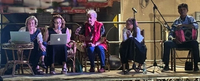 In piazza Olmo a Torraca, suggestivo borgo collinare a pochi chilometri da Sapri, ho trascorso una splendida serata sotto le stelle con le sorelle dott.sse Luciana e Rita Gravina, che hanno parlato del dialetto torrachese, con l'intermezzo musicale di Antonio Liano alla fisarmonica diatonica e della nipotina di 9 anni Rosa, dalla splendida voce, i quali ci hanno fatto ascoltare famosi brani di musica popolare. Da Luciana e Rita, che hanno declamato anche alcune poesie del prof. Gioacchino Vaiano, stralciate dal suo libro "Memorie e Storia", pubblicato in due edizioni del 1982 e 2010, abbiamo appreso che il dialetto di Torraca, "ameno borgo con tanti fiori ai balconi", come mi confido' anni or sono il Presidente della REA (Radiotelevisioni Europee Associate) dottor Antonio Diomede, ha subíto influenze dal siciliano e anche dallo spagnolo. Luciana ha raccontato la storia del vocalismo siciliano, nato in seguito alla congiura del 1246 dei nobili contro Federico II di Svevia, detto "Stupor mundi", che venne nel Cilento per sedare la rivolta, armando un esercito in Sicilia contro i nobili che si erano asserragliati nel castello di Capaccio. Li sconfisse e la sua vendetta fu feroce perché doveva servire come esempio. Federico II donó ai soldati le terre confiscate ai nobili! I soldati, poiché parlavano in siciliano, lasciarono tracce forti in molti paesi come Torraca e Roccadaspide. Per quanto riguarda l'influenza spagnola, al termine della piacevole serata (è intervenuto anche il pubblico con alcune testimonianze) Luciana e Rita Gravina hanno elencato alcuni vocaboli, come "a scuppetta" da "escopeta" (fucile), "a pinata" (pentola), con la n accentata spagnola, e verbi dall'imperfetto spagnolo come "sapìa" e "dicìa". "Dulcis in fundo", sono state citate anche le parole "crai e biscrai", dal latino ", "cras et postcras". (Tonino Luppino)