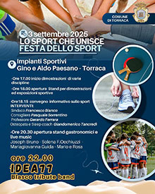 Lo Sport che unisce - Festa dello Sport 3 settembre 2025 - dalle ore 17.00 Impianti Sportivi Gino e Aldo Paesano – Torraca