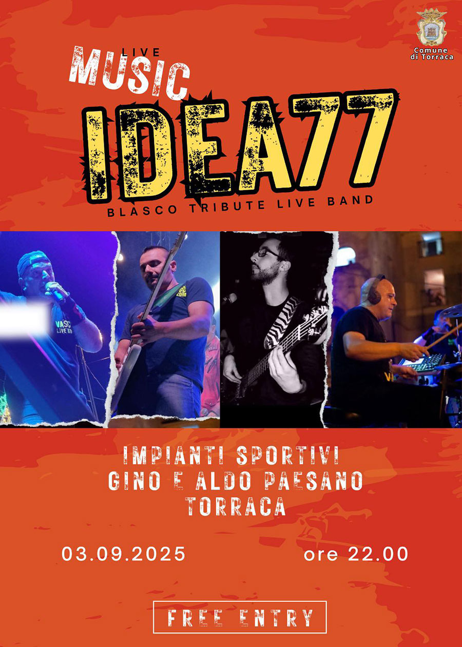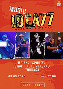 Un pomeriggio dedicato allo sport, al divertimento e alla comunità! - Dimostrazione varie discipline - Stand sportivi e gastronomici - Convegno informativo e musica dal vivo - L’ospite speciale della serata del 3 settembre è un artista che ha saputo distinguersi nel panorama musicale con stile e personalità. Ha collaborato con uno dei nomi più influenti della scena: Don Backy, portando sul palco sonorità uniche e coinvolgenti. Preparatevi a vivere un’esibizione carica di energia e passione...Accogliamo con molto entusiasmo: Solena Occhiuzzi. - Gran finale con la Blasco tribute band – IDEA77