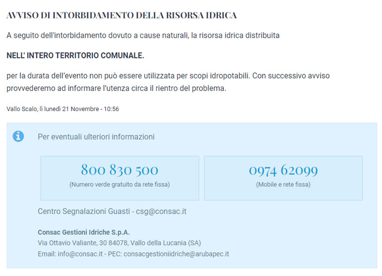 Santa Marina, il sindaco chiede la verifica del funzionamento dei sistemi di discarico e deflusso delle acque naturali. “Dopo le precipitazioni intense che si sono verificate in questi giorni e in vista delle probabili condizioni meteo avverse dei prossimi giorni, ho richiesto con urgenza -Spiega il Sindaco del Comune di Santa Marina Giovanni Fortunato- ai responsabili comunali del settore dell’Area Tecnica e ai Vigili Urbani, ognuno per la propria competenza, di verificare la funzionalità delle opere di nuova realizzazione, di individuare le criticità relative ai fenomeni di allagamento, in particolare, di verificare la presenza di eventuali opere abusive che impediscono la funzionalità dei canali presenti sulla fascia costiera e relazionare con sollecita urgenza sulle problematiche e sulle azioni da perseguire per il superamento delle stesse. Questo per scongiurare sul nascere eventuali criticità e per salvaguardare l’incolumità dei cittadini che è da sempre la finalità principale di questa Amministrazione”. (Comune di Santa Marina)