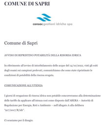 Lettera aperta al signor sindaco di Sapri e alla Consac gestioni idriche