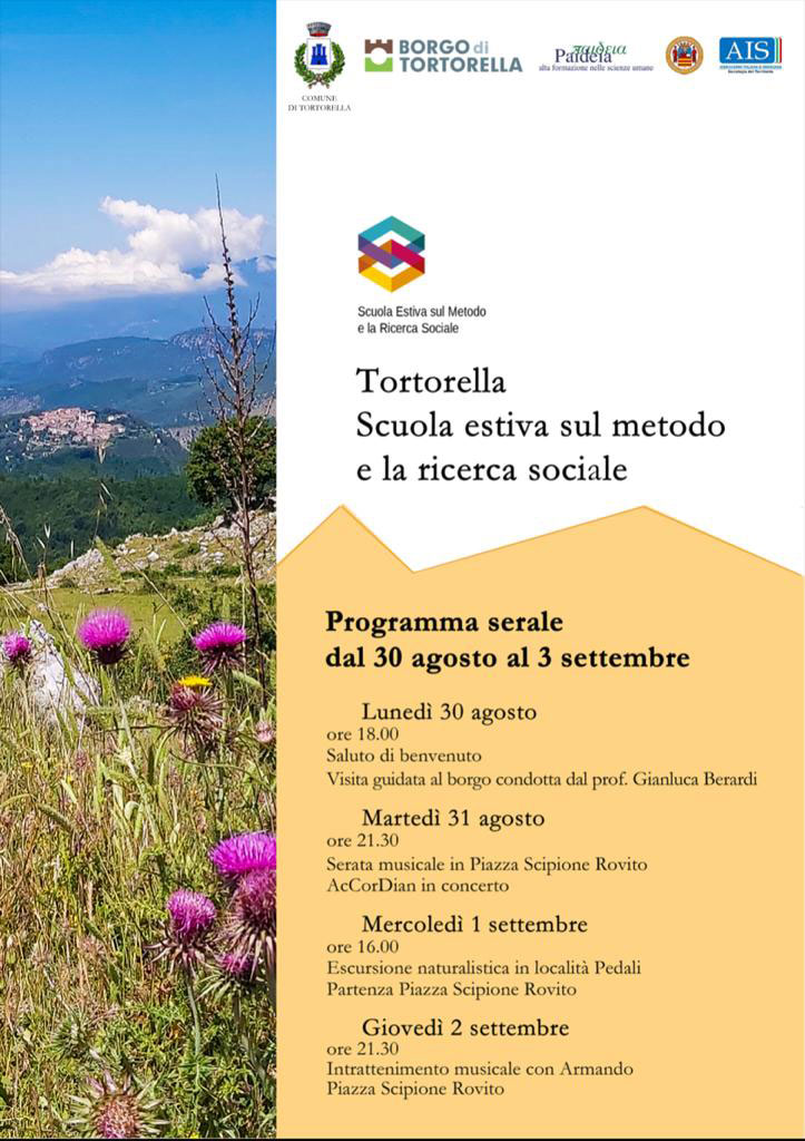 Studenti e ricercatori per una settimana nel borgo di Tortorella per la Scuola estiva sul metodo e la ricerca. Torna protagonista l’alta formazione nel borgo di Tortorella. Dal 30 agosto al 3 settembre riparte l’appuntamento annuale rivolto a studenti universitari, dottorandi, ricercatori e professionisti che desiderano approfondire la teoria e le tecniche dei diversi metodi standard della ricerca sociale in un contesto paesaggistico unico che, come nella Grecia antica, promuove un rapporto tra docente e discente a stretto contatto con la natura. Un borgo ideale per i partecipanti per approfondire il loro ambito di studio, regalando scorci incantevoli e momenti di riflessione collettiva. Al via, dunque, la XVII edizione della “Scuola estiva sul Metodo e la Ricerca”, organizzata dal Dipartimento di Scienze Politiche e della Comunicazione dell’Università di Salerno e l’associazione Paideia da un’idea di Alberto Marradi, professore ordinario di Metodologia delle scienze sociali all’Università di Firenze. Si parte lunedì 30 agosto alle ore 18 con il saluto di benvenuto e la visita guidata nel centro storico di Tortorella, con il professore Gianluca Berardi. Martedì gli AcCorDian si esibiranno in concerto alle 21.30 in piazza Scipione Rovito. Mercoledì alle 16 si terrà l’escursione naturalistica in località Pedali, mentre giovedì 2 settembre, a partire dalle 21:30, sarà l’occasione di vivere una serata di comunità in piazza con l’accompagnamento musicale di Armando. Le lezioni, invece, si svolgono presso il Palazzo marchesale, sede ufficiale della scuola estiva. Da molti anni, il Comune di Tortorella, guidato dal sindaco Nicola Tancredi, ospita la scuola estiva che ha vantato la partecipazione di docenti con alto riconoscimento nella comunità scientifica come Bezzi, Bichi, Chiesi, Corbetta, Di Franco, Gasperoni, Giampaglia, Losito, Marra, Mattioli, Montesperelli, Palumbo, Pitrone, Marradi stesso e molti altri. Negli anni, inoltre, si è sviluppata una forte collaborazione con la Scuola e il Dipartimento di Scienze Politiche e della Comunicazione dell’Università degli Studi di Salerno, tanto da portare alla sottoscrizione di un Accordo di Collaborazione tra il Comune di Tortorella e il Responsabile Scientifico del Dipartimento Felice Addeo. Sono 90 in tutto gli iscritti alla Scuola Estiva, di cui una trentina in presenza. Il resto sarà in smart-working per via del Covid. Una scelta che è resa necessaria sia per non affollare gli spazi della scuola che del borgo. Tutti gli eventi e le lezioni saranno svolte nel pieno rispetto delle norme Anti-Covid-19. Il Comune ha inoltre chiesto il green pass agli studenti che si sono iscritti alla scuola estiva. (Marianna Vallone)