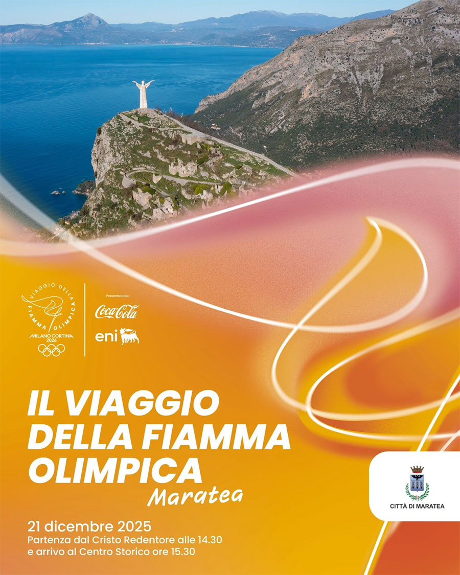 La Fiamma Olimpica arriva a Maratea; scoprite i dettagli e vivete assieme a noi questo momento di grande valenza turistica per la nostra Città. La partenza è prevista alle ore 14.30 quando il primo tedoforo inizierà il suo percorso ai piedi della Statua del Cristo Redentore; successivamente il convoglio e i tedofori si alterneranno per raggiungere il Centro Storico, attraversando Via San Francesco dei Poverelli, Corso Garibaldi, Piazza Buraglia fino a Piazza Vitolo, dove accoglieremo il passaggio della Fiamma Olimpica con tutto il nostro calore e il senso di accoglienza che contraddistinguono la nostra Comunità. Vi invitiamo ad arrivare con anticipo in Centro Storico, usufruendo dei parcheggi di Piazza Europa e/o Piazzale San Pio, per vivere con emozione e gioia questa festa che coinvolgerà tutta la Città! (Comune di Maratea)