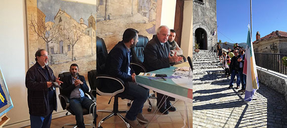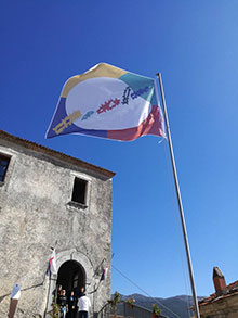 In questi giorni, davanti al Castello Baronale Palamolla, sventola la Bandiera d’artista del Maestro Dino Vincenzo Patroni, issata al termine d’un incontro, nell’ambito della tredicesima “Giornata del Contemporaneo” (Evento proposto dall’Associazione Musei Arte Contemporanea Italiani), al quale hanno partecipato anche il Professore universitario Francesco d’Episcopo e il dottor Gianfredo Santoro, in rappresentanza dell’Associazione culturale “Torraca tra cultura e sapori”. Dopo i saluti del Sindaco, Domenico Bianco, e l’intervento introduttivo del moderatore Professor Gaetano Bellotta, Patroni, che è l’autore anche del medaglione in bronzo con l’effige dell’Eroe Risorgimentale Carlo Pisacane, installato in piazza Olmo il 29 giugno 2015, ha illustrato la sua Bandiera per Torraca. “Il verde acqua -ha affermato- richiama le tonalità del nostro mare pulito, mentre il caldo colore giallo-oro vuole ricordare le messi di grano, raccolte dai contadini locali nel mese di giugno. Il rosso vivo, poi, rappresenta la vita e i tramonti infuocati, vissuti da alture panoramiche. Infine, il colore azzurro, per simboleggiare il cielo che sovrasta la ridente cittadina di Torraca!”. “Le cinque sagome colorate ed armoniose -ha continuato l’Artista salernitano, residente a Maratea- rappresentano le 5 frazioni della comunità: il tutto inserito in un ovale bianco, che raffigura la globalizzazione e coinvolge la Torraca del nostro tempo!”. Bandiera d’Artista, quindi, è messaggio di cultura! E Torraca è, come ha sostenuto il primo cittadino Domenico Bianco, “…paese di cultura che, già da tempo, rivaluta il proprio patrimonio storico-artistico!”. “La Bandiera di Patroni -ha osservato tra l’altro, il professor d’Episcopo- completa la vocazione artistica di un paese che ha sempre cercato nell’arte un rinforzo della vita e un modo solidale della comunità di ritrovare una propria, specifica identità!”. Per la cronaca, va aggiunto che il poeta saprese Luciano Ignacchiti, nel corso dell’incontro, ha letto una sua poesia dedicata a Torraca. Per concludere, ritengo doveroso fare un plauso ai giovani che animano, con la loro passione e professionalità, il Castello Baronale Palamolla. Questi i nomi: Vincenza, Valeria, Marco, Tommaso, Antonio, Vincenzo e Marino! E’ proprio il caso di dire: “I magnifici sette!”. (Tonino Luppino)