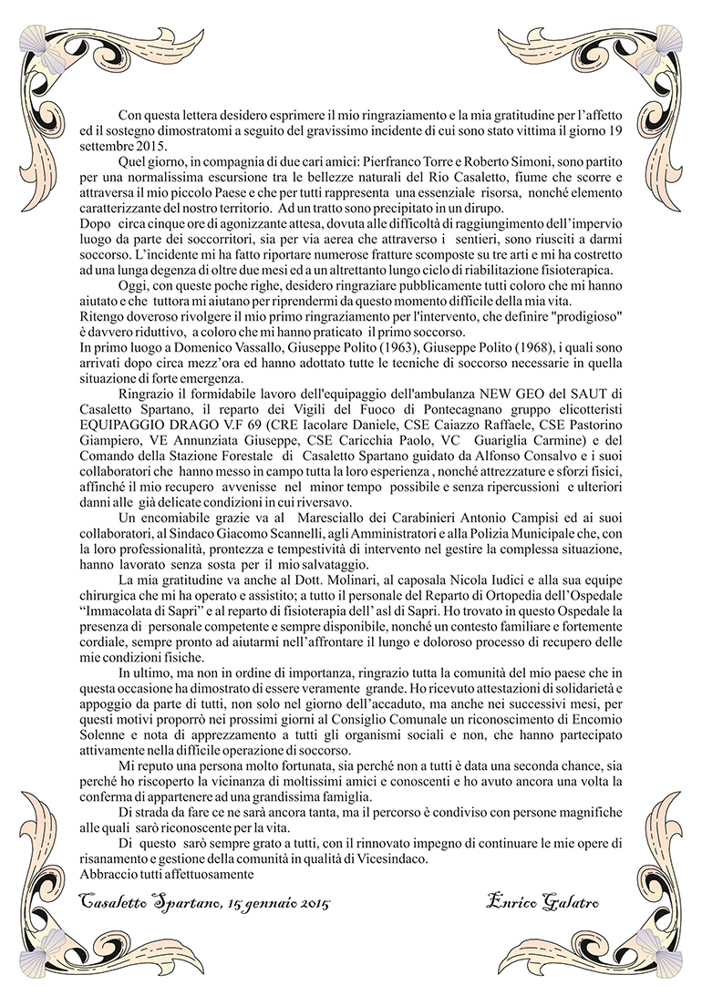 L'Amministrazione Comunale di Caselle in Pittari, dopo la recente consegna e installazione di altri due defibrillatori, (ad oggi sono ben sei i defibrillatori presenti sul territorio comunale), al fine di far acquisire le opportune conoscenze, anche attraverso un'esercitazione pratica, in merito alle linee guida per un corretto utilizzo dei dispositivi D.A.E., così come tra l'altro già previsto e reso obbligatorio in ambito sportivo dal Decreto "BALDUZZI", ha inteso promuovere ed organizzare in collaborazione con l'Associazione Onlus "Carmine Speranza", il CORSO DI PRIMO SOCCORSO "BLS-D" e per L'USO DEL DEFIBRILLATORE (Riconosciuto e Accreditato dall' IRC di Bologna), in programma il giorno SABATO 16 GENNAIO 2016, a partire dalle ore 9.00 a CASELLE in PITTARI, presso Casa Canonica (Via A. Parente). La valutazione finale prevede una prova teorico-pratica con skill-test. A conclusione dell'attività verrà rilasciato l'attestato di formazione al primo soccorso BLS-D. Per qualsiasi ulteriore informazione e le pre-iscrizioni al corso ci si puo' rivolgere al Comune di Caselle in Pittari (0974/988009 - 3381694808 - 3451709185) o direttamente all'Associazione "Carmine Speranza" (0974/985583) (Comune di Caselle in Pittari)