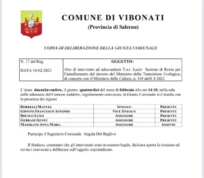 L’Amministrazione comunale di Vibonati si è costitutita in giudizio davanti al Tar Lazio per chiedere l’annullamento del decreto del Mite che ha espresso parere favorevole alla compatibilità ambientale dello Studio di Fattibilita’ del 1 lotto,Battipaglia/Romagnano,della nuova linea dell’alta velocità Salerno-Reggio Calabria. (Comune di Vibonati)