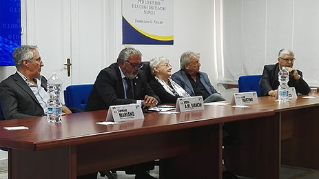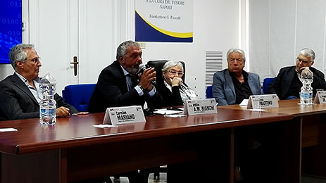 Il D.G. Bianchi col D.A. Mariano e il Direttore della UOC Biologia Molecolare e Oncogenesi virale prof. Buonaguro Il coordinatore Comunicazione & Marketing Mario Anepeta